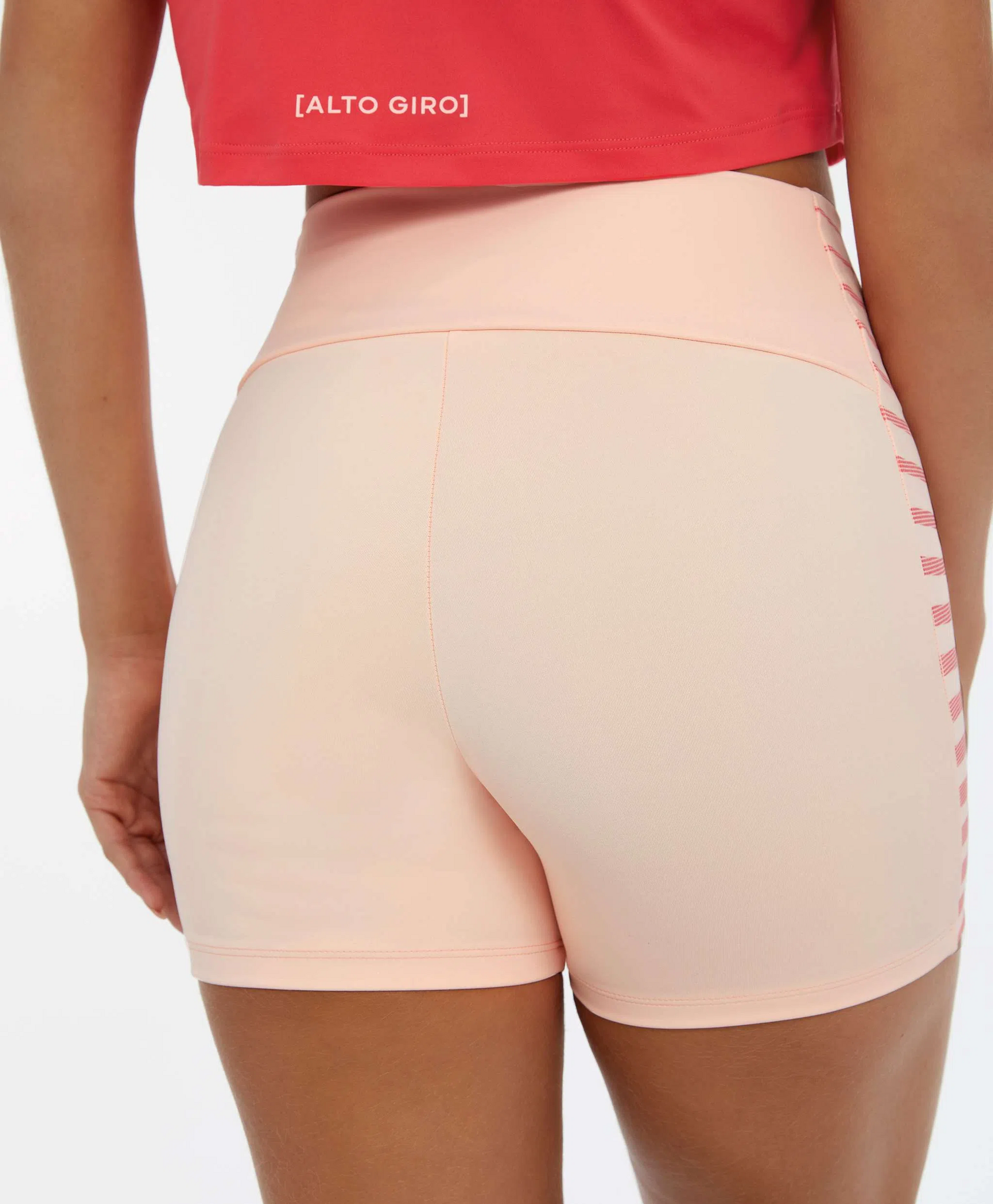 Model Back: Alto Giro Fitness Bas Bermuda Blackout Bio Listras Coral Relax