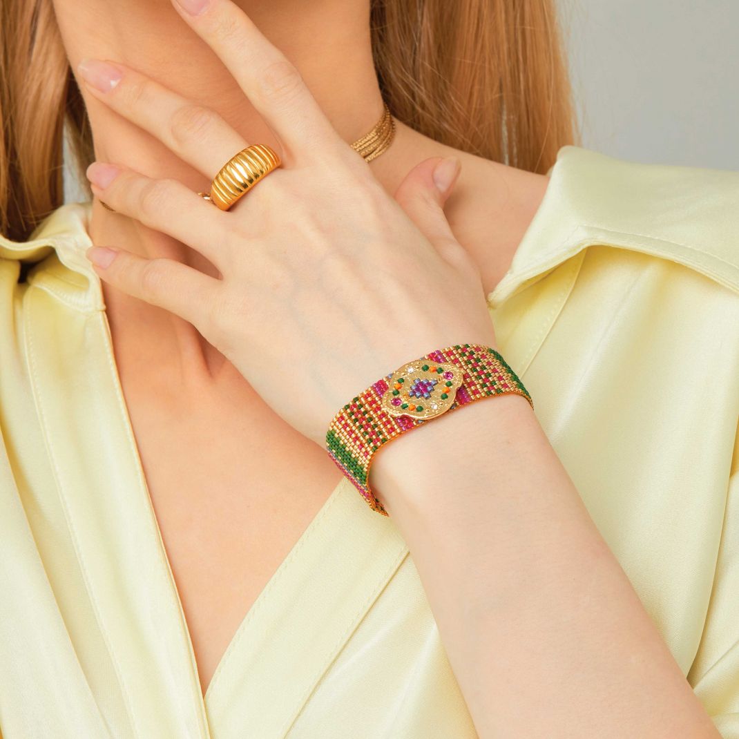 • Matière: Gold plated brass 14K, glass beads, CZ crystal, magnetic clasp
