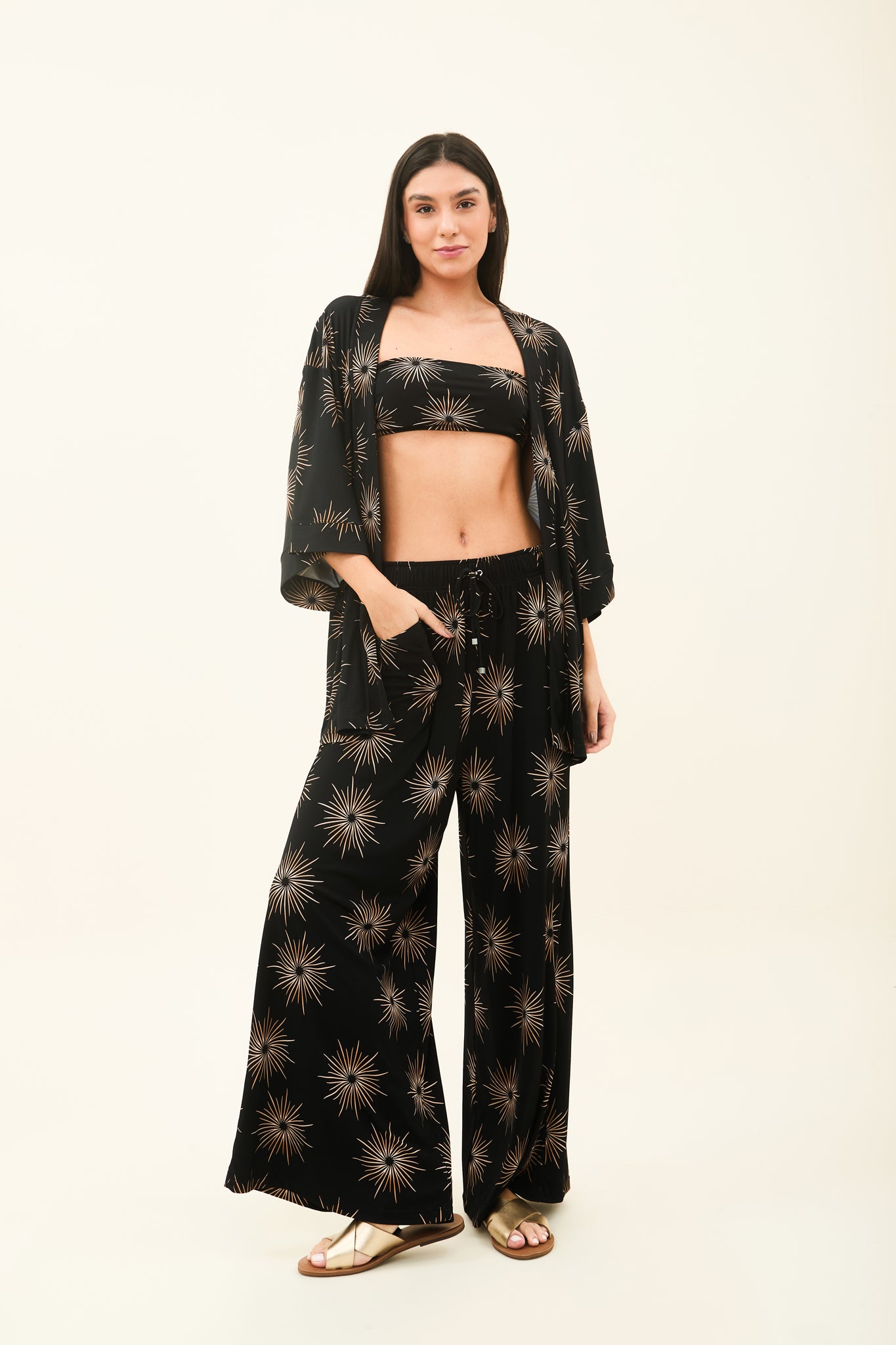 Model Front: Uv Line Vêtement De Plage Kimono Shine-Preto Upf50+