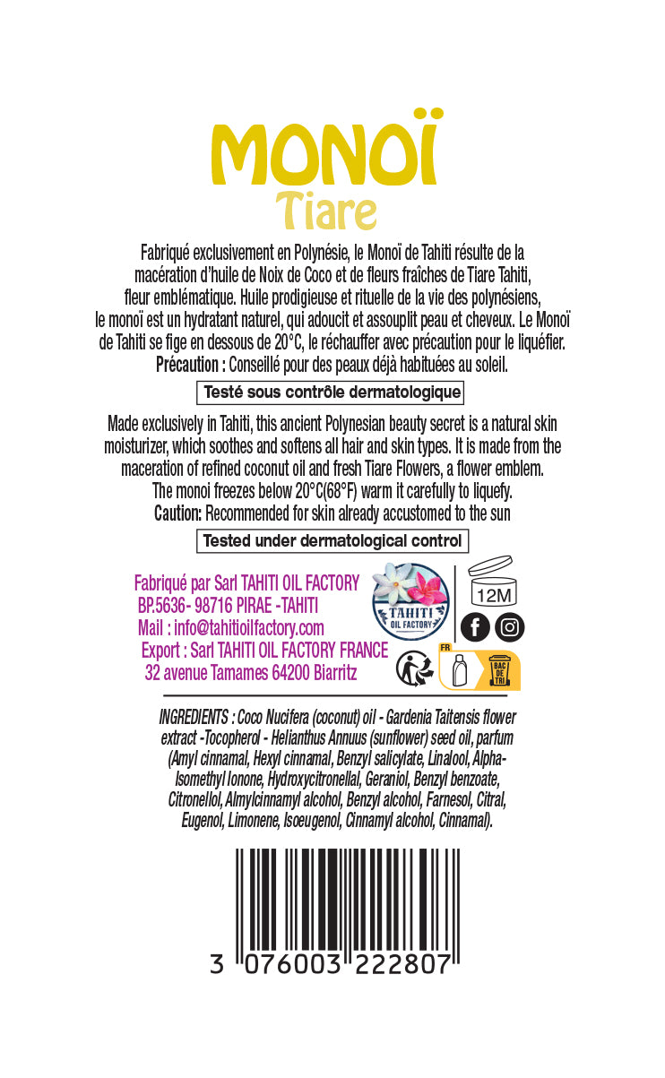 Product Back: Tevi Monoi Oils Monoi Tiare Traditionnel 120Ml
