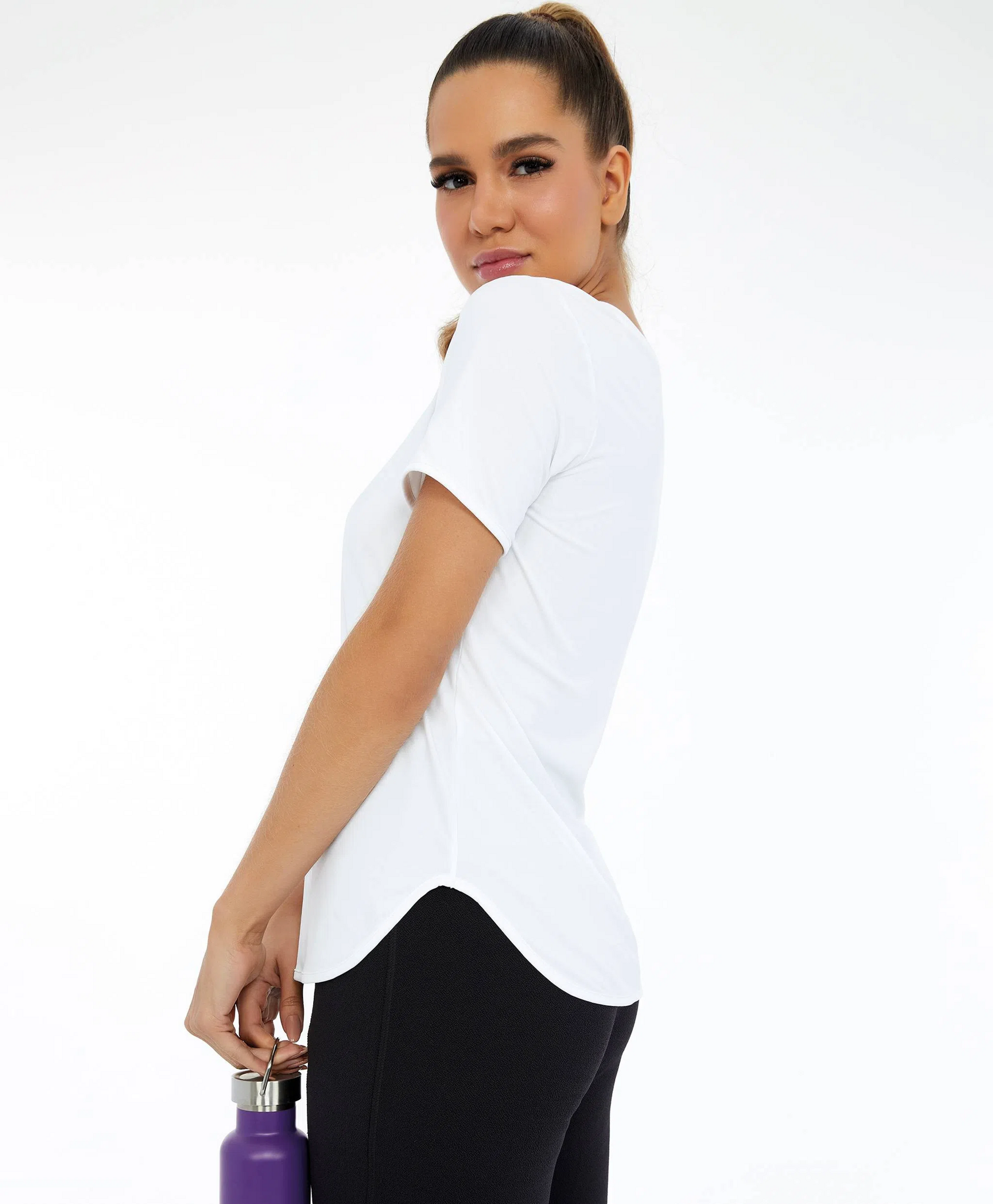 T-Shirt Skin Fit Alongada Gola V Branco