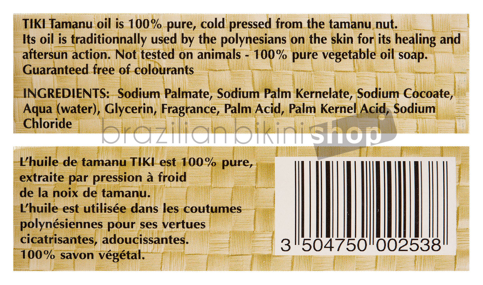 - Matière: Sodium palmate, Sodium palm kernelate, Palm acid, Palm kernel acid, Aqua, Glycerin, Sodium chloride, Cocos nucifera (coconut) oil, Gardenia Taitensis Flower Extract, Parfum (Fragrance), Tocopherol (Vitamin E).